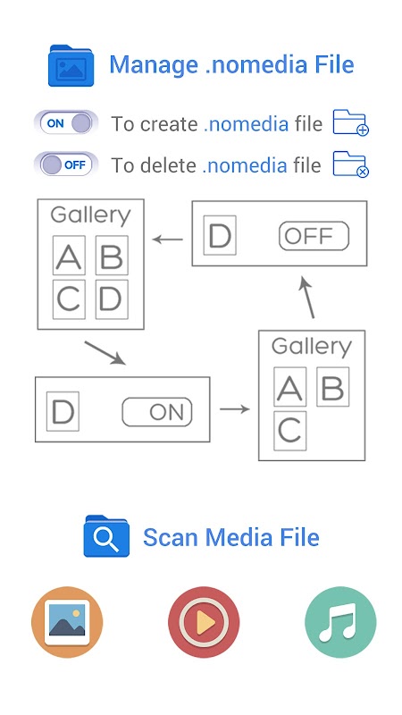¡Crea .nomedia de una manera fácil! Escáner de medios inteligentes.