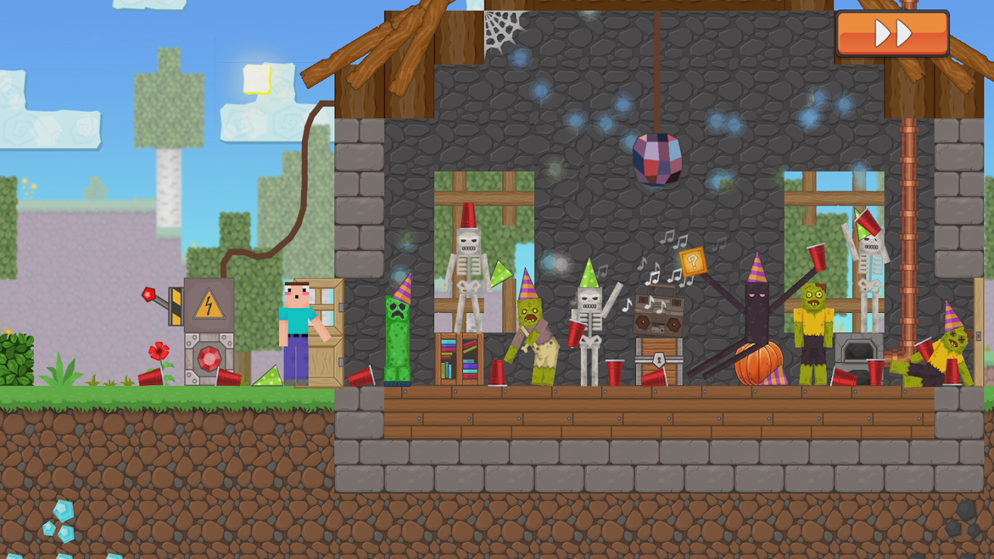 ¡Noob se ha convertido en arquero y ahora juntos debéis limpiar el mundo de todos los monstruos! A veces no es tan simple. Los monstruos se esconden detrás de cajas, construyen mecanismos con palancas y puertas, tiran de cuerdas y colocan dinamita para protegerse. ¿Pero esto les ayudará? ¿Es esto un problema para un verdadero profesional del tiro con arco?