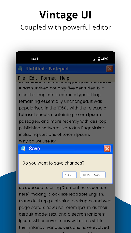 Diseño clásico inspirado en PC: la interfaz de usuario de Notepad Text Editor está inspirada en el antiguo Bloc de notas de PC. Tiene una interfaz de usuario intuitiva junto con un poderoso editor que es fácil de usar y fácil de usar. Notepad Text Editor funciona completamente fuera de línea.