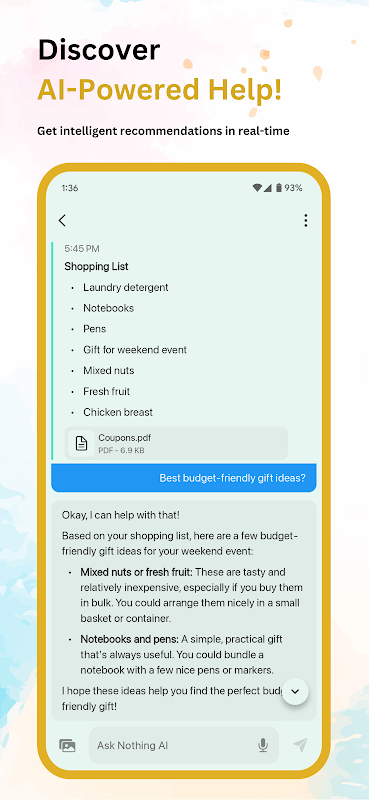 Nothing te ayuda a capturar ideas, gestionar tareas y organizar información, todo con una interfaz limpia e intuitiva. Ya sea que estés haciendo la lista de la compra, tomando notas de reuniones o controlando fechas límite, Nothing simplifica tu día a día con una asistencia AI que entiende lo que necesitas.