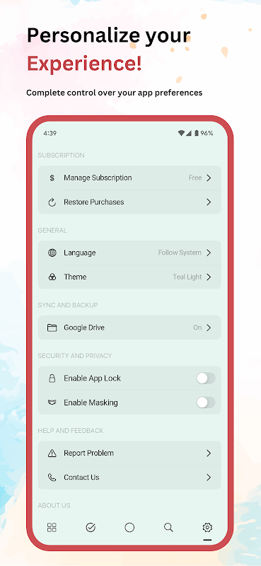 - Protección de privacidad - Protege tu información con bloqueo de la app y enmascaramiento de contenido