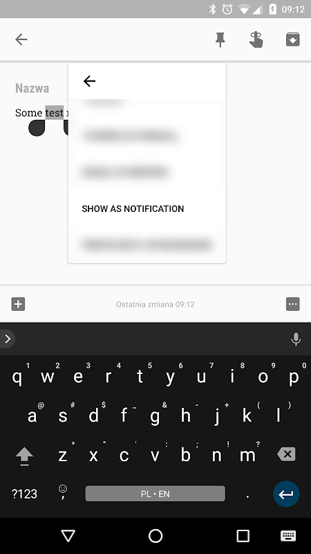 Se te permite colocar notas en la notificación. No sólo manualmente, sino también a través del menú cuota de sistema o menú de selección de texto (en Android 6.0 o más reciente).