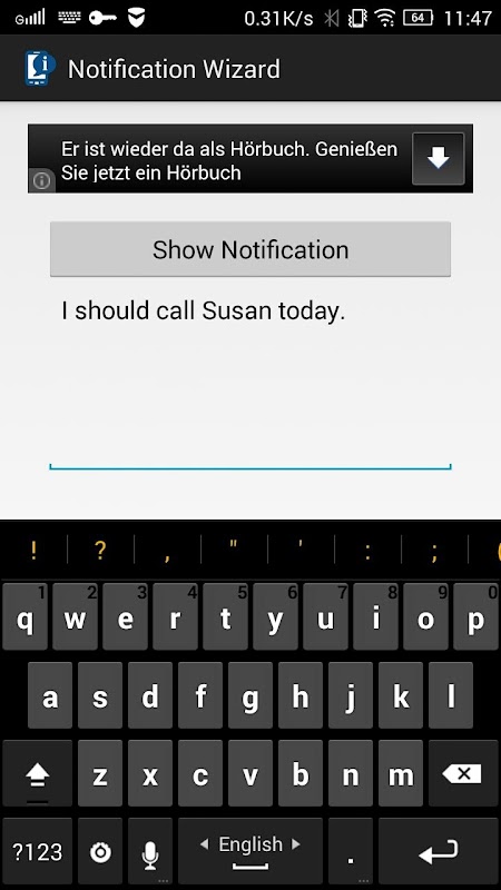 Esta aplicación te permite añadir mensajes de notificación personalizada a la barra de notificaciones