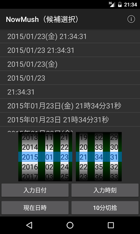 Es una aplicación de la seta para que introduzca la fecha y la hora. Utilice de la aplicación correspondiente a la seta como Simeji.