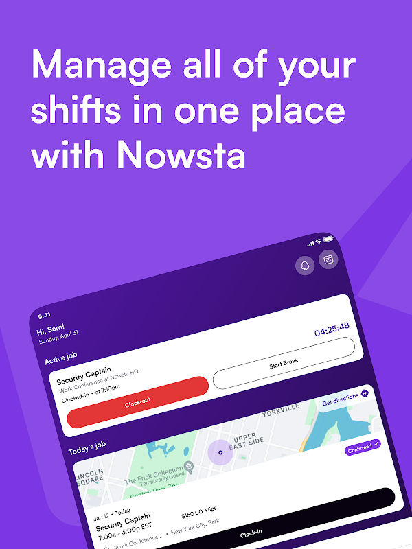 Todo lo que necesitas para gestionar tu horario laboral — Acepta solicitudes de trabajo, registra tus turnos y recibe compensaciones por tus horas trabajadas.
