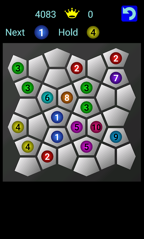 Tres bolas vecinas con el mismo número se fusionarán en una sola bola con un número más grande.