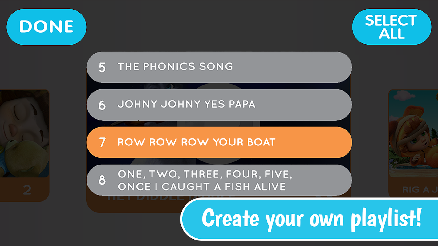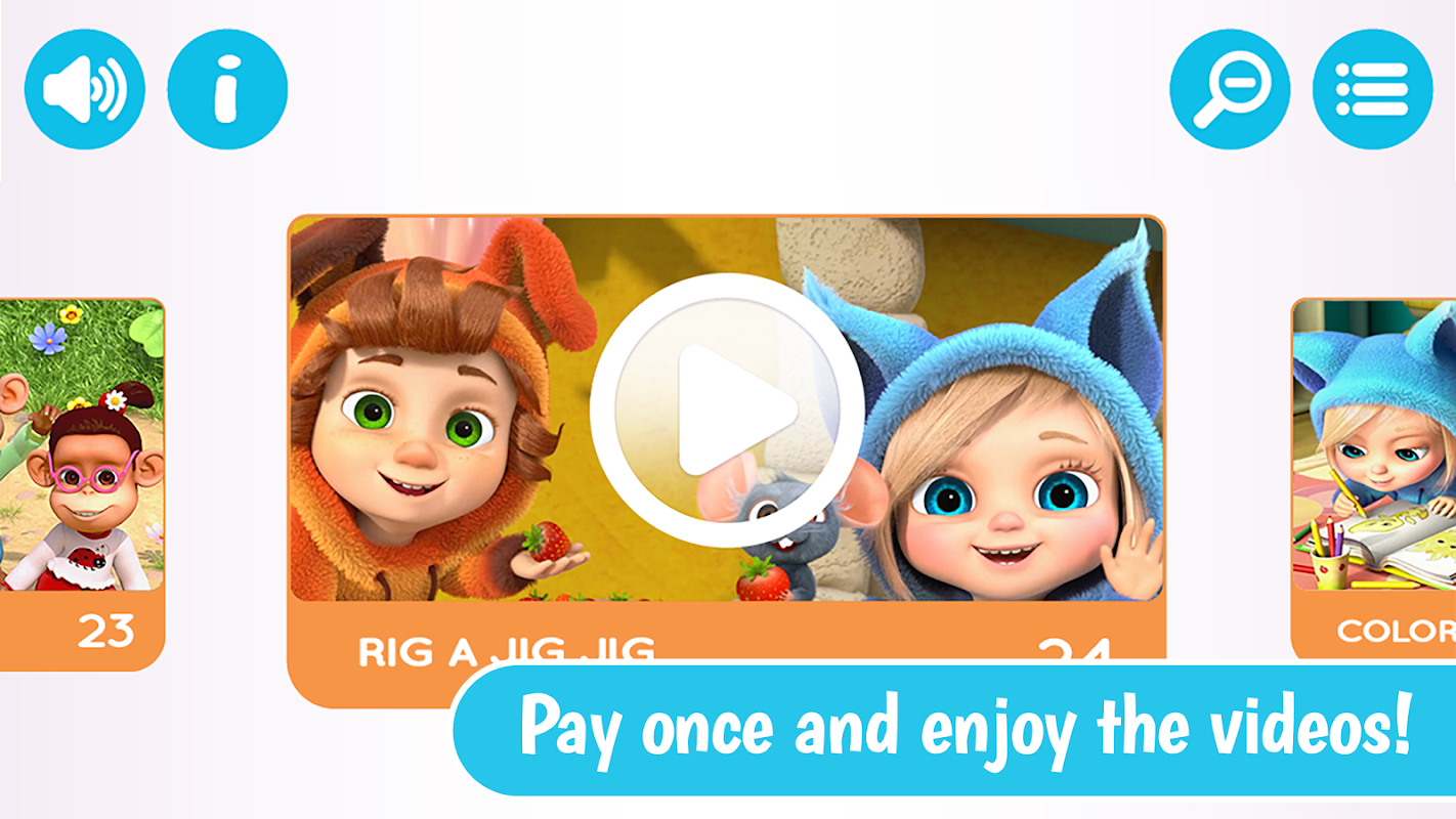 La aplicación contiene más de 100 videos del canal de YouTube "Dave and Ava - Nursery Rhymes and Baby Songs".