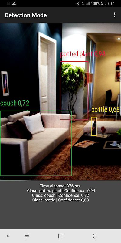 - Modo de detección: detección de 80 clases del conjunto de datos COCO con cuadro delimitador.