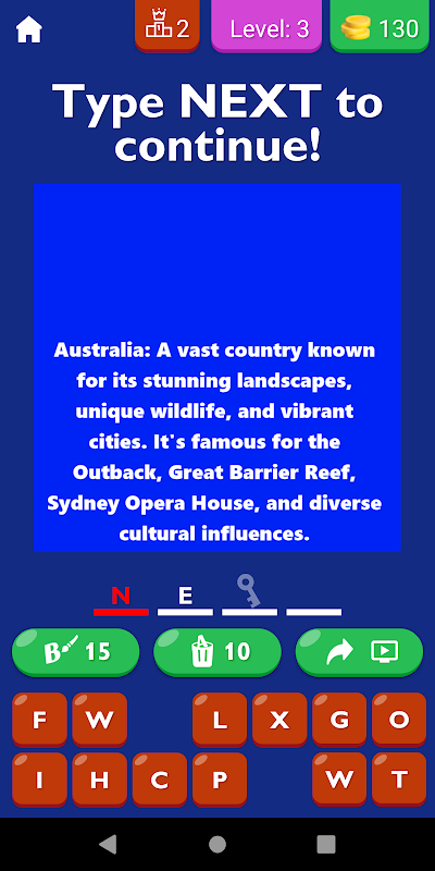 🌍 Educativo y entretenido: si eres un entusiasta de la geografía o simplemente buscas una forma divertida de aprender más sobre Oceanía, esta aplicación es perfecta para ti. Mejora tus habilidades geográficas mientras disfrutas de una experiencia de juego atractiva.