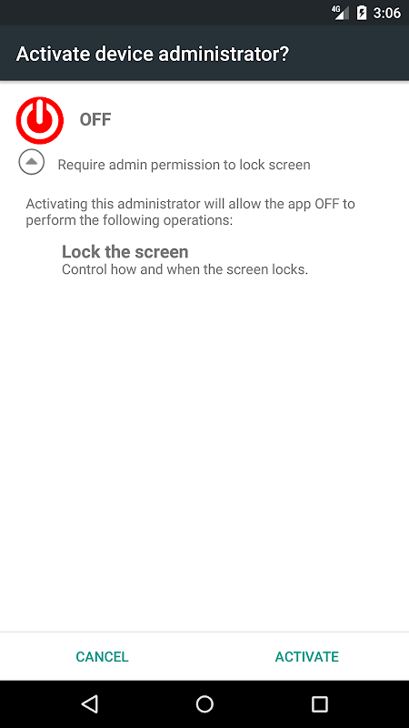 This app requires device administrator privileges - to lock screen