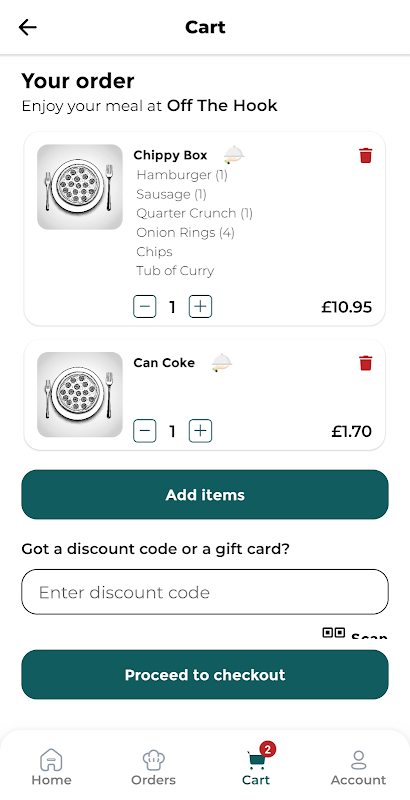 ¿Te apetece el pescado y las patatas fritas perfectos? ¡Off the Hook te lleva el querido clásico británico directamente a tu puerta! Experimente pescado dorado y crujiente, patatas fritas cortadas a mano y guarniciones tradicionales a través de nuestra elegante y moderna aplicación de pedidos. Ya sea que prefiera entrega a domicilio o recogida, ordenar su banquete junto al mar favorito está a solo unos toques de distancia. Nuestra sencilla interfaz garantiza una experiencia fluida desde la navegación por el menú hasta el pago, lo que hace que la comida reconfortante británica sea más accesible que nunca. ¡Descárgalo ahora y descubre por qué somos el destino preferido de la ciudad para disfrutar del auténtico pescado y patatas fritas!