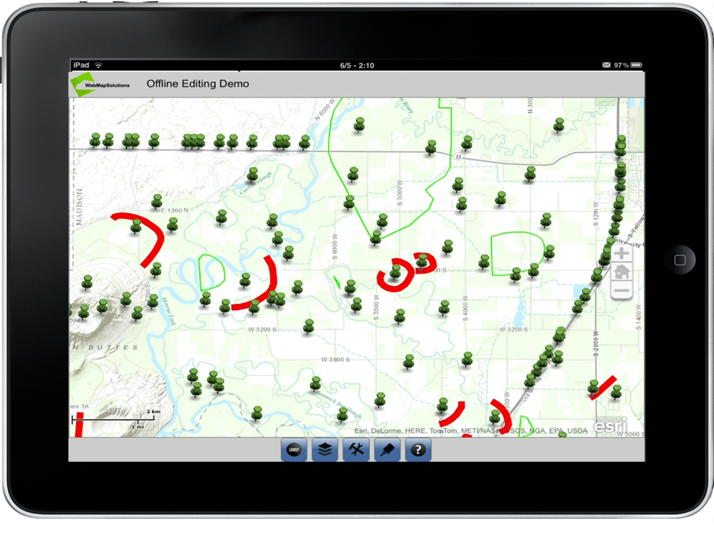 This mobile application provides the ability for mobile ArcGIS Online subscribers to both collect new and edit existing features when out of Wi-Fi range or disconnected. Point, line and polygon editing is supported as are image attachments. Offline base maps are provided by locally stored tile packages. Once back online the edited features are synced with ArcGIS Online. The mobile app is cross platform, and can be easily configured and extended.