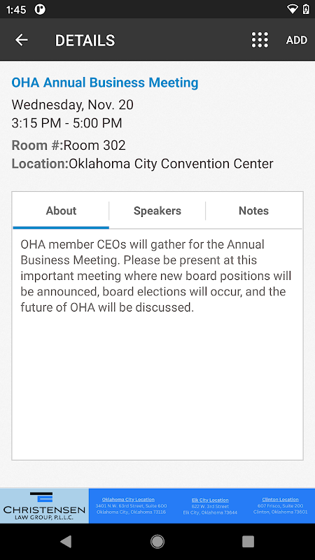 Esta aplicación TripBuilder Event Mobile™ la proporciona la Asociación de Hospitales de Oklahoma sin costo alguno. Fue diseñado y desarrollado por TripBuilder Media Inc. Si tiene alguna pregunta o necesita ayuda sobre cómo usar esta aplicación, envíe un ticket de soporte (ubicado dentro del ícono de Ayuda en la aplicación).