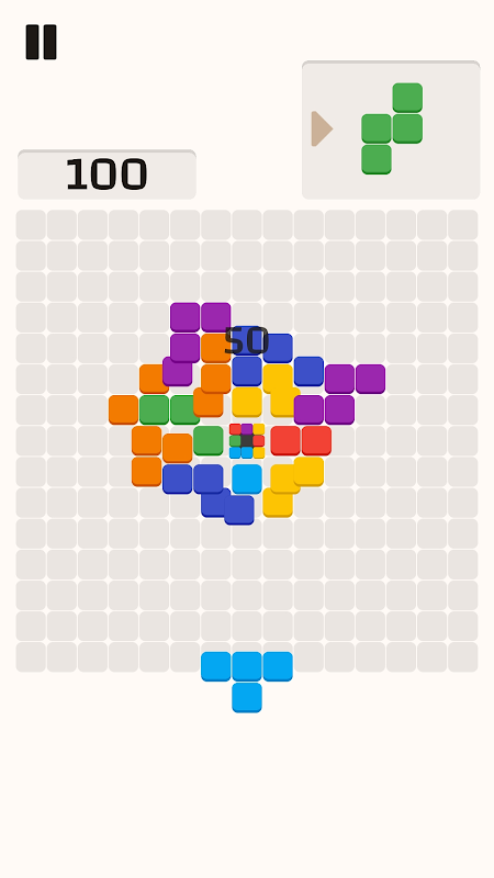 Las piezas vienen de las 4 direcciones y deben apilarse en la pieza central. Una vez que completas una capa, desaparece. ¡No dejes que los bloques apilados lleguen al borde!