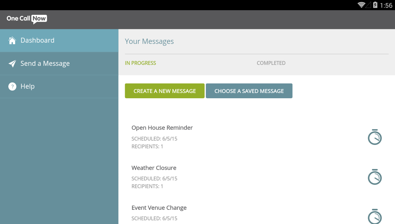 La aplicación One Call Now es un complemento móvil para el servicio de mensajería masiva en línea. Ofrece a los clientes acceso a herramientas automatizadas que envían mensajes de texto SMS, voz y correo electrónico a grupos de cualquier tamaño, convirtiendo su teléfono, tableta u ordenador en una potente plataforma de mensajería masiva. Los usuarios pueden grabar y enviar mensajes rápidamente a todos los contactos o a uno o más subgrupos. Todos los mensajes se pueden guardar para reutilizarlos cuando sea necesario. Grabe el mensaje con su propia voz usando la aplicación o use la función de texto a voz para escribir un mensaje y recibirlo con una voz automatizada y natural. Consulte los informes de mensajes en su teléfono o tableta para ver quién lo recibió, esté donde esté. Use la aplicación para enviar alertas de emergencia y cierres, recordatorios de citas, notificaciones a empleados, anuncios de eventos o cualquier otro tipo de mensaje que deba enviarse rápidamente a un grupo grande de personas. Los contactos incluso pueden responder al mensaje por teléfono, correo electrónico o mensaje de texto. La aplicación One Call Now requiere una prueba gratuita o un plan de llamadas de pago, disponible en línea en https://onecallnow.crisis24.com/ o llamando al 800.462.0512. Hay planes para todos los presupuestos.