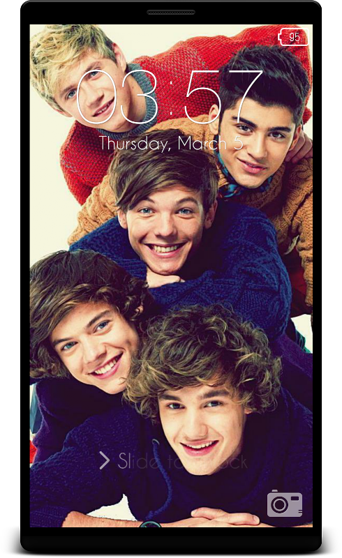 This lock screen is based on 1D theme. There are many OneDirection HD backgrounds in this app. You can unlock your phone using different methods like Slide to unlock, enter passcode, draw pattern, pin, etc.