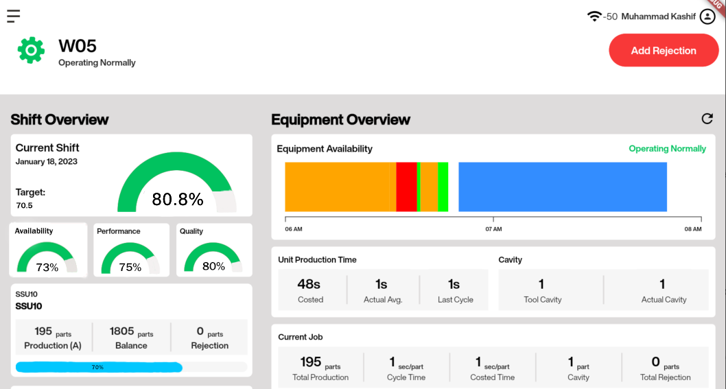 OneApp proporciona un tablero para monitorear y rastrear el estado de las máquinas de fábrica