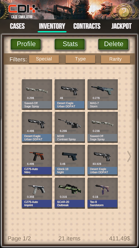 Attention: The game is a simulator and joke, so all weapon which you have won here, can not be used in Counter Strike: Global Offensive