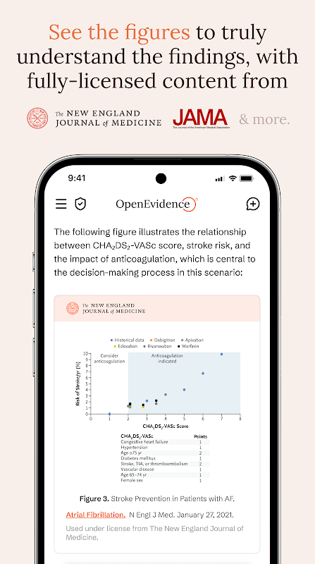 Cientos de miles de profesionales de la salud verificados confían en OpenEvidence para respaldar decisiones clínicas cruciales en el punto de atención, con respuestas basadas en fuentes, citas y literatura médica revisada por pares.