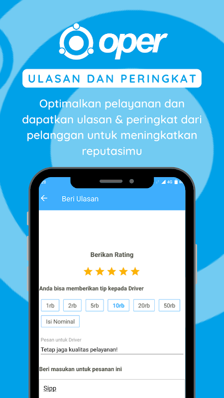 ¡Opera Driver es una solución para aquellos de ustedes que quieren obtener más ingresos usando su vehículo! Únase a Oper Driver y ofrezca viajes, comida a domicilio y otros servicios a los usuarios en Purbalingga, Banjarnegara y Purwokerto.
