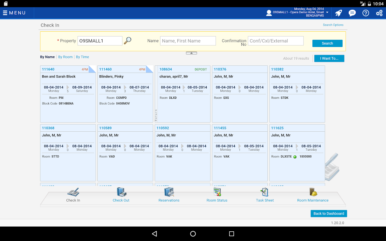 This application offers essential functionality at their fingertips, with multi-step “trains” to guide a Hotel’s Front Desk Agent through processes and workflows to help them complete tasks, utilizing simple, recognizable icons, indicators, and buttons for quick interaction while all the heavy lifting is done behind the scenes.