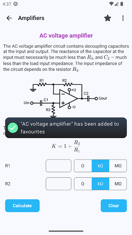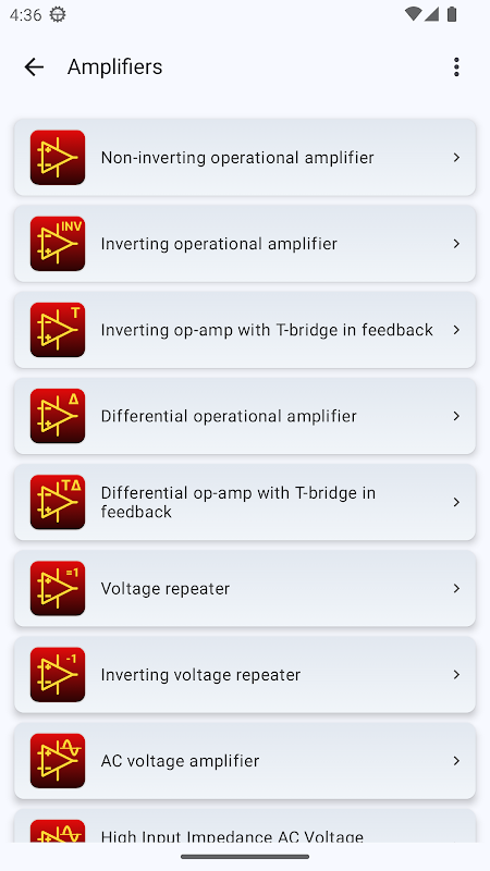 La aplicación para diseñar y calcular circuitos electrónicos utilizando amplificadores operacionales será útil para ingenieros electrónicos, estudiantes y entusiastas de la electrónica, tanto principiantes como experimentados. Este programa puede usarse como guía al crear varios circuitos electrónicos, proyectos y prototipos. Además, la aplicación contiene datos de referencia sobre series populares de amplificadores operacionales y comparadores.