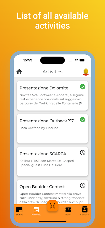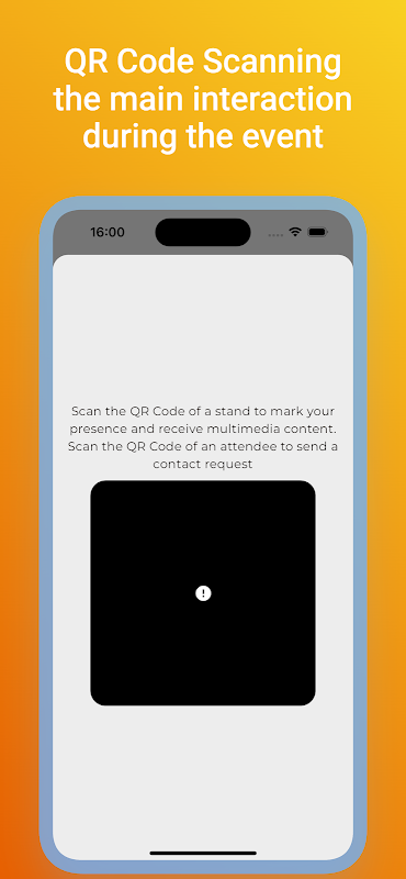 Escanee el código QR del boleto de participante para compartir su contacto. Una vez que acepten su solicitud, ambos tendrán información importante y podrán guardarlos en su directorio telefónico.