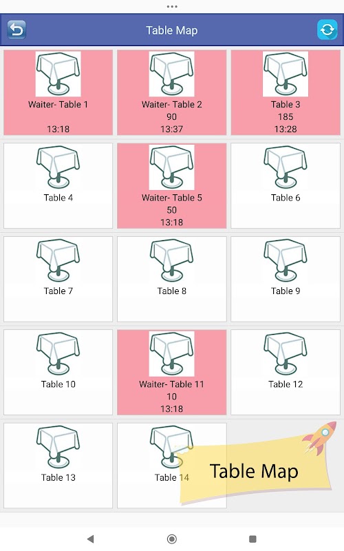Pantalla de camarero (dentro del restaurante)