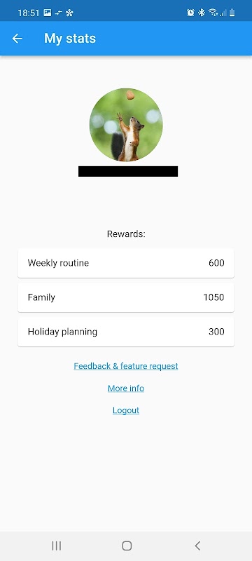 Un sistema de recompensas funciona como un incentivo adicional para completar las tareas antes. Los usuarios jóvenes (y los jóvenes de corazón) pueden recolectar monedas y usarlas para "pagar" para posponer tareas. Los usuarios reciben monedas adicionales si las tareas se completan antes. Esto ayuda contra la procrastinación y fomenta el hábito de abordar las tareas antes de su fecha de vencimiento. No hay compras en la aplicación y las monedas recolectadas son completamente virtuales.