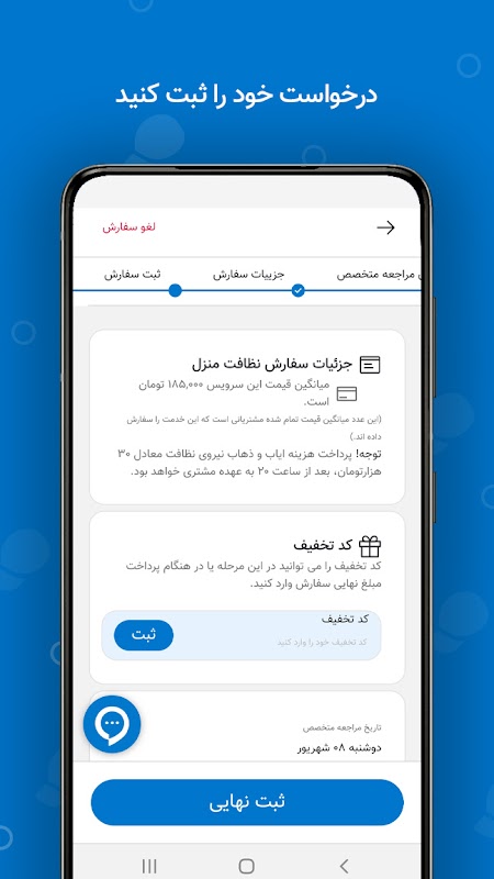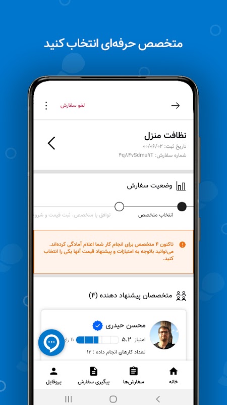 La aplicación de servicio en línea Master Master lo ayudará a hacer su trabajo de manera más fácil y rápida al presentar especialistas profesionales y reparadores móviles. Esta plataforma de servicios está aquí para brindarle todo lo que necesita. Infórmese del precio y costo de varios servicios a través de esta aplicación y de forma totalmente gratuita, y manténgase en contacto con expertos en cada campo. Incluso puedes hacer una mejor elección comparando el perfil de cada persona presentada y estudiando la experiencia de otras personas que han ejercido su profesión y comparando expertos. Si está interesado en dejar su casa, apartamento y obra de construcción al sistema inteligente de solicitar los servicios de un maestro, para su primer pedido, puede obtener un regalo de 35 mil tomanes de nuestra parte utilizando el código de descuento WELcome00. También puedes conocer más descuentos en esta aplicación siguiendo al máster en las redes sociales.