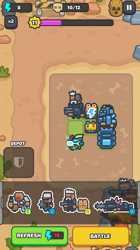 🔹 Fusión y actualización: combina unidades para desbloquear luchadores más fuertes con habilidades únicas.
