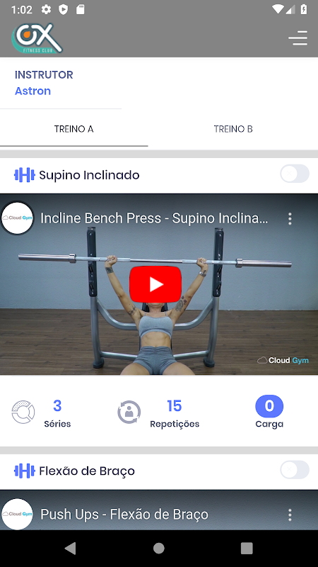 - Ficha de treino completa na tela do celular;