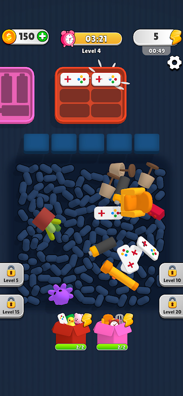 Tu objetivo es encontrar objetos entre las bolitas de poliestireno y colocarlos en las ranuras correctas.