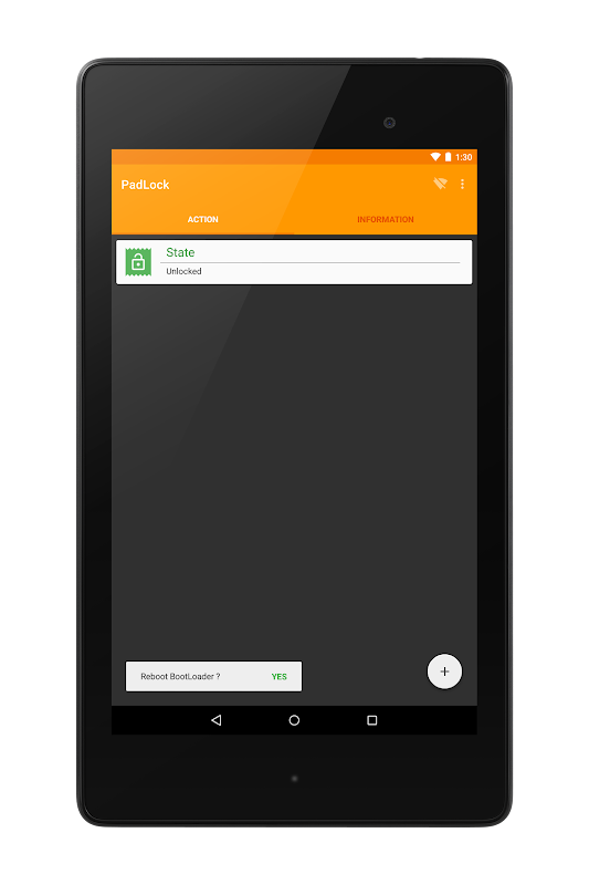 - Déverouiller son BootLoader : Grâce à l'accès root, l'application déverouille le BootLoader de votre Nexus sans perdre de données. Vous pouvez aussi redémarrer directement sur le BootLoader après modification de son état.