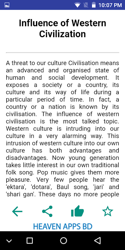 La Colección de Párrafos en Inglés es una parte importante del Segundo Libro en Inglés. Tenemos más de 100 reglas para escribir aplicaciones de párrafo con bangla en esta aplicación de escritura de párrafos en inglés para la aplicación bangla. Inglés todos los párrafos y la composición aparecen en PSC, JSC, SSC y HSC English Secondary Examination. Hay alrededor de 5 a 10 números en este párrafo sobre la escritura de párrafos para la clase 4 y la aplicación de escritura de párrafos en inglés hsc. Una de las ramas de English Second Paper Book es SSC English 2nd Paper y HSC English 2nd Paper. Aquellos que son débiles sobre la gramática inglesa pueden seguir el libro English 2nd Paper ssc grammar. A continuación seguirá el párrafo avanzado en inglés y el libro hsc de composición. Si te gusta esta sencilla aplicación de párrafo en inglés, compártela con todos.