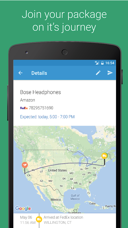 • Pronóstico de entrega: Para todas las compañías de mensajería que proveen este servicio. Con ParcelTrack sabrás cuando está programado tu envío. DHL, DHL Express, UPS y FedEx proveen pronósticos de entrega por el momento.