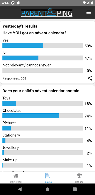 - View yesterday's results and learn new things about parenting
