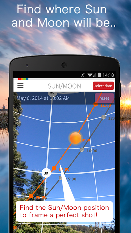 Landscape Photography made easy. Find the top photography locations and predict the position of the sun and moon.