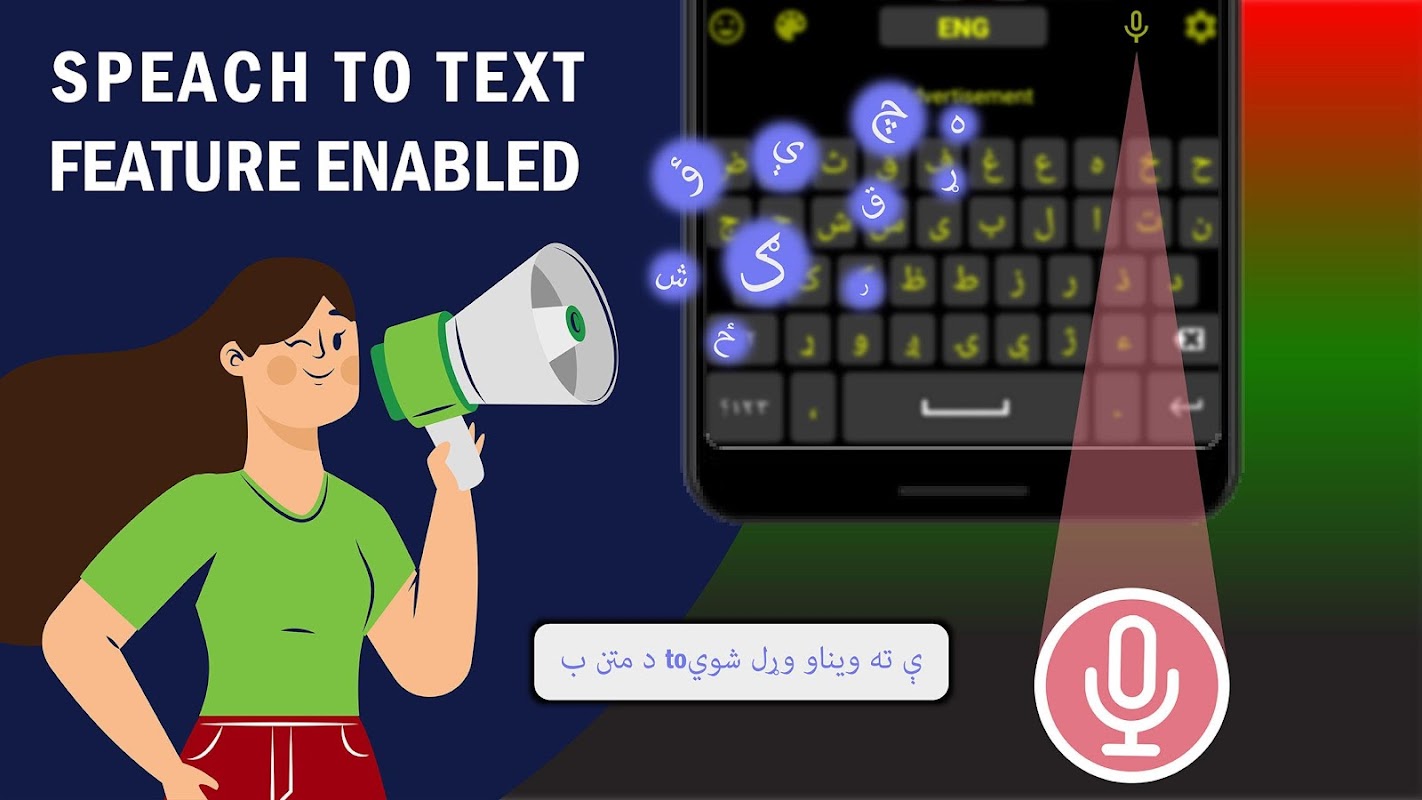 A great feature of Pushto keyboard is that you can typy pashto and english language with the help of your voice commands.