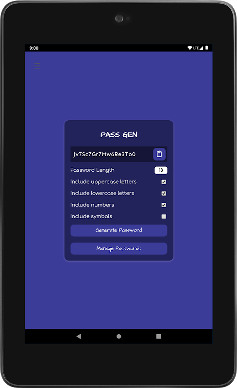La aplicación Passgen genera una contraseña que cumple las condiciones establecidas como minúsculas, mayúsculas, números, símbolos y longitud de la contraseña. Puedes generar contraseñas aleatorias con diferentes combinaciones. Una vez que genere una contraseña, puede copiarla para usarla.