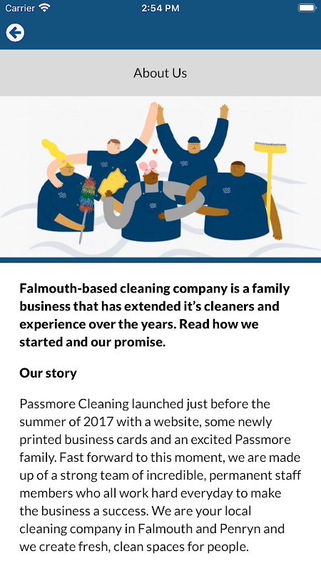 nos apasiona el servicio al cliente y brindar a cada uno de nuestros clientes el mejor servicio de limpieza en Cornualles. Ya sea a corto o largo plazo, nuestro objetivo es causar una impresión duradera y construir una relación profesional con usted.