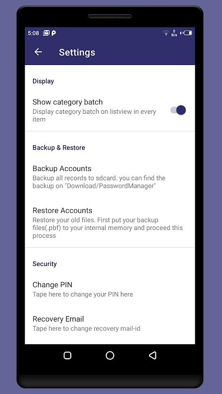 Como simple administrador de contraseñas, no tenemos almacenamiento en la nube. Entonces, todas sus contraseñas almacenadas solo en su dispositivo. Evite la pérdida de datos, haga una copia de seguridad de sus contraseñas manualmente y guarde los archivos de copia de seguridad en un lugar seguro.