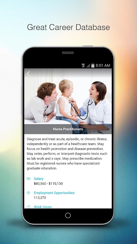 • Access comprehensive descriptions for every career – find out what personality traits, education degrees, college majors and work experience are required for each job.