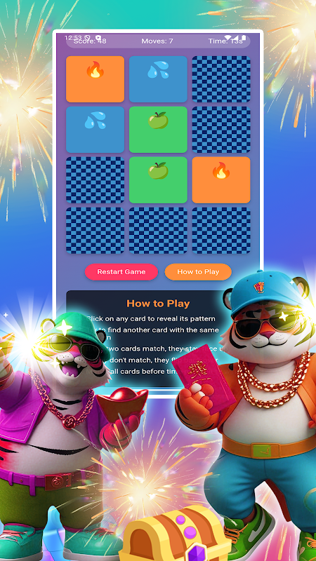 Pon a prueba y mejora tus habilidades de memoria combinando pares de patrones de emoji coloridos antes de que acabe el tiempo. Con un juego simple pero desafíos adictivos, Pattern Play ofrece una forma divertida de ejercitar tu cerebro en solo unos minutos al día.