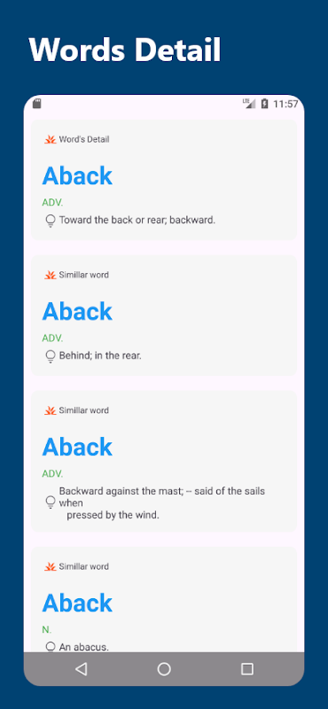 Perfecta para estudiantes, estudiantes de idiomas y entusiastas de las palabras, nuestra aplicación de diccionario es su recurso de referencia para todas sus necesidades lingüísticas. ¡Descárgalo ahora y desbloquea el mundo de las palabras!