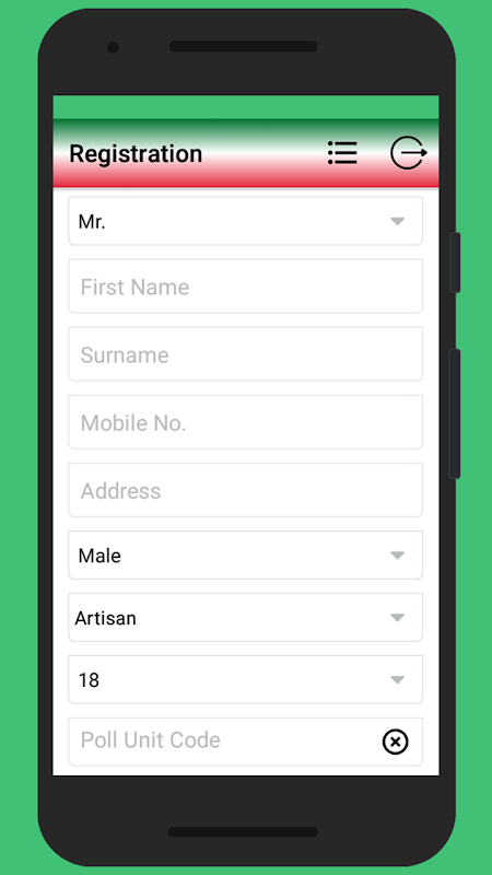 The users register on the app using a password that had been created and provided by administrator. Upon completing a simple registration, they have the opportunity to register voters they meet during their electoral campaigns. The information inputted by these users are uploaded to the database and are available to sub-domains and the administrator.