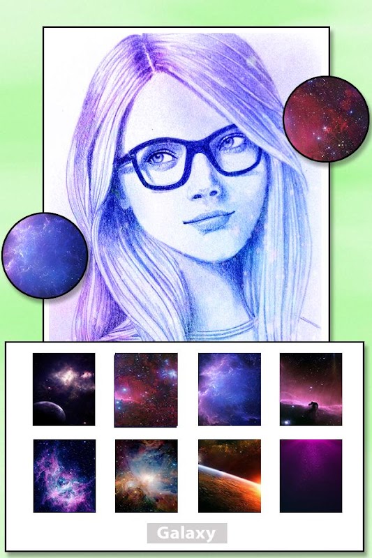 Color photo sketch transforms your photos into artworks using sketch threshold effects (Popularly known as Photoshop Galaxy Effect). Wide range of sketch effects like crayon, wax, painting, drawing, black and white effects.