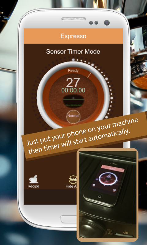 Perfect Espresso Coffee Timer will start counting by detecting vibration of espresso machine. And it will alert to you when timer is expired.