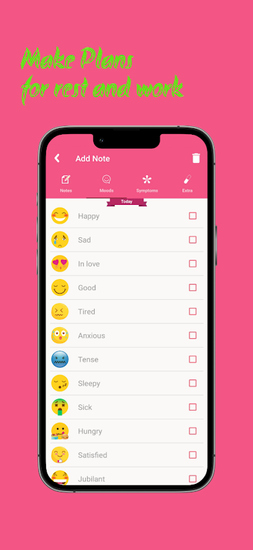 Realice un seguimiento de los períodos irregulares, el peso, la temperatura, el estado de ánimo, el flujo sanguíneo, los síntomas del síndrome premenstrual, la mucosidad, el peso, el IMC, la temperatura basal, la prueba de ovulación, la prueba de embarazo, el busto, la cintura, la presión arterial y más. ¡Toma el control total de tu salud!