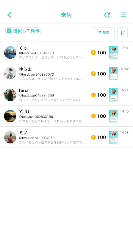 Con la aplicación de gestión, puede comprobar la distribución de mensajes/cartas de fans.